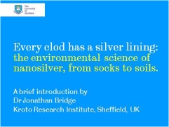 Related to this, I am giving two talks on the environmental science of nanosilver (silver nanoparticles) to a group of Year 10 students at Bradfield School on Wednesday 16th March as part of National Science and Engineering Week (http://www.britishscienceassociation.org/web/NSEW/). More on this, together with a video podcast, soon…